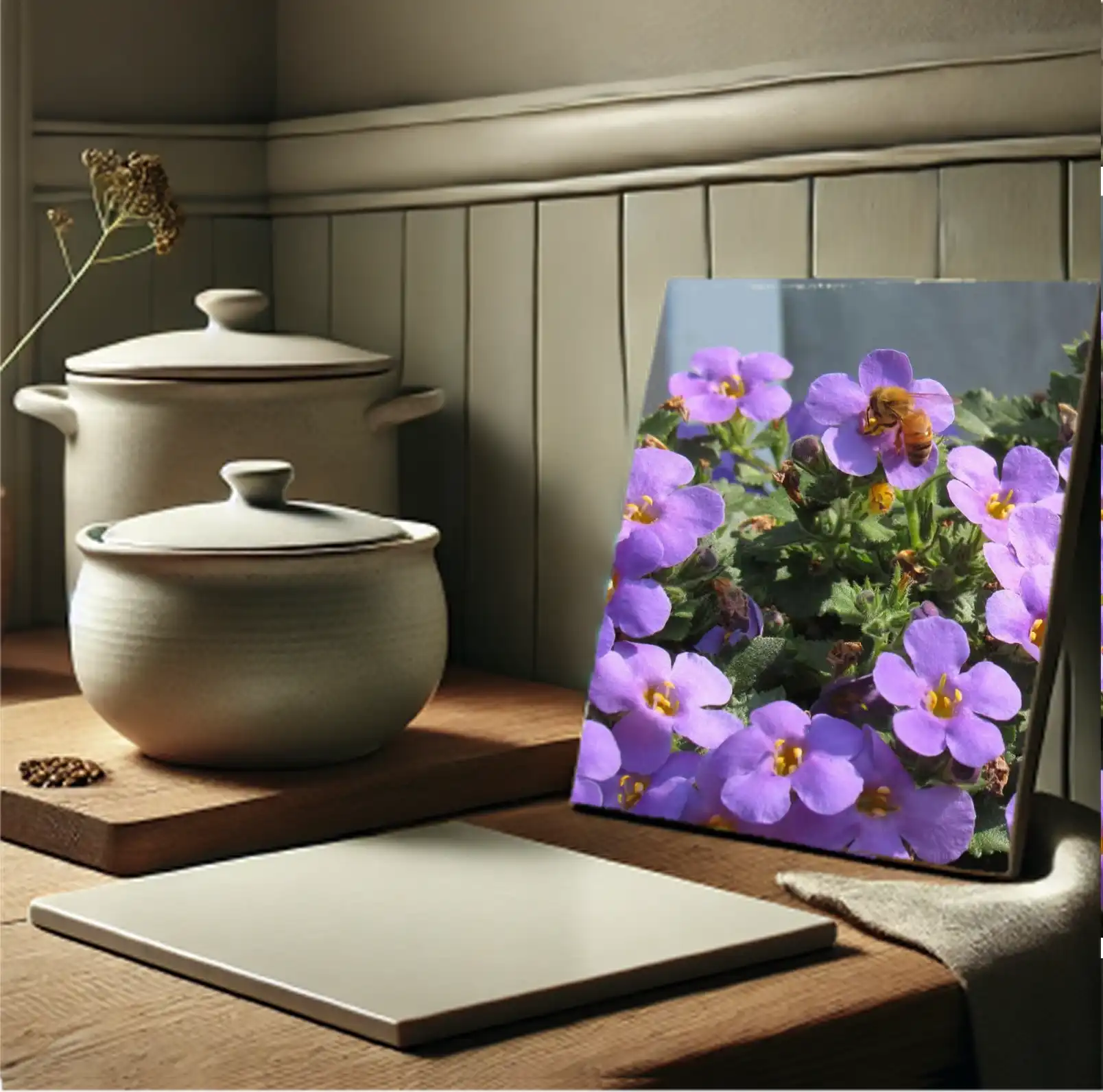 אריח קרמיקה בעיצוב אומנותי מרהיב, שיהפוך כל שולחן או משטח עבודה למוקד של יופי והשראה.
