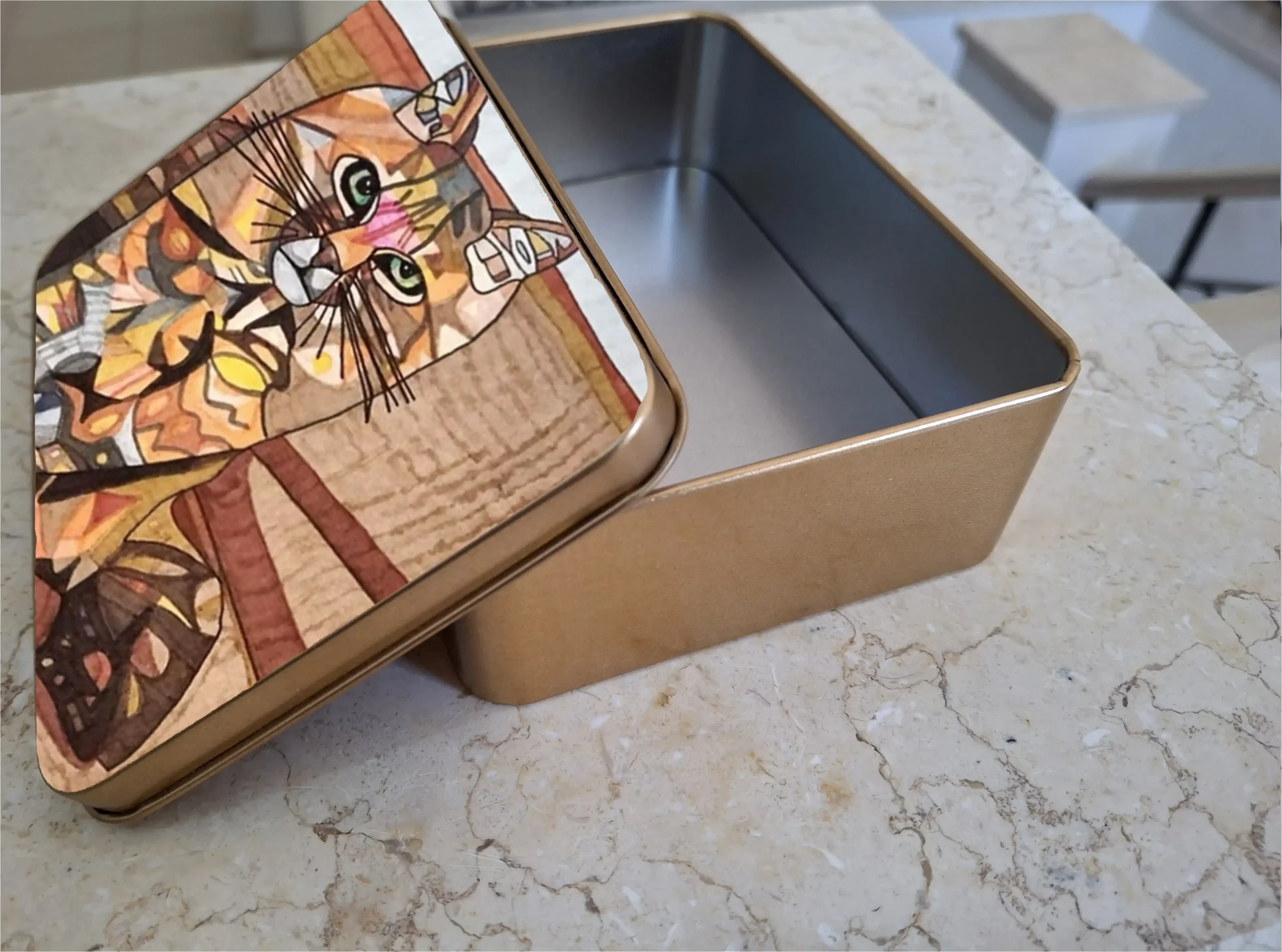 קופסת פח מעוצבת עם ציורי אומנים – מתנה ייחודית עם ערך חברתי